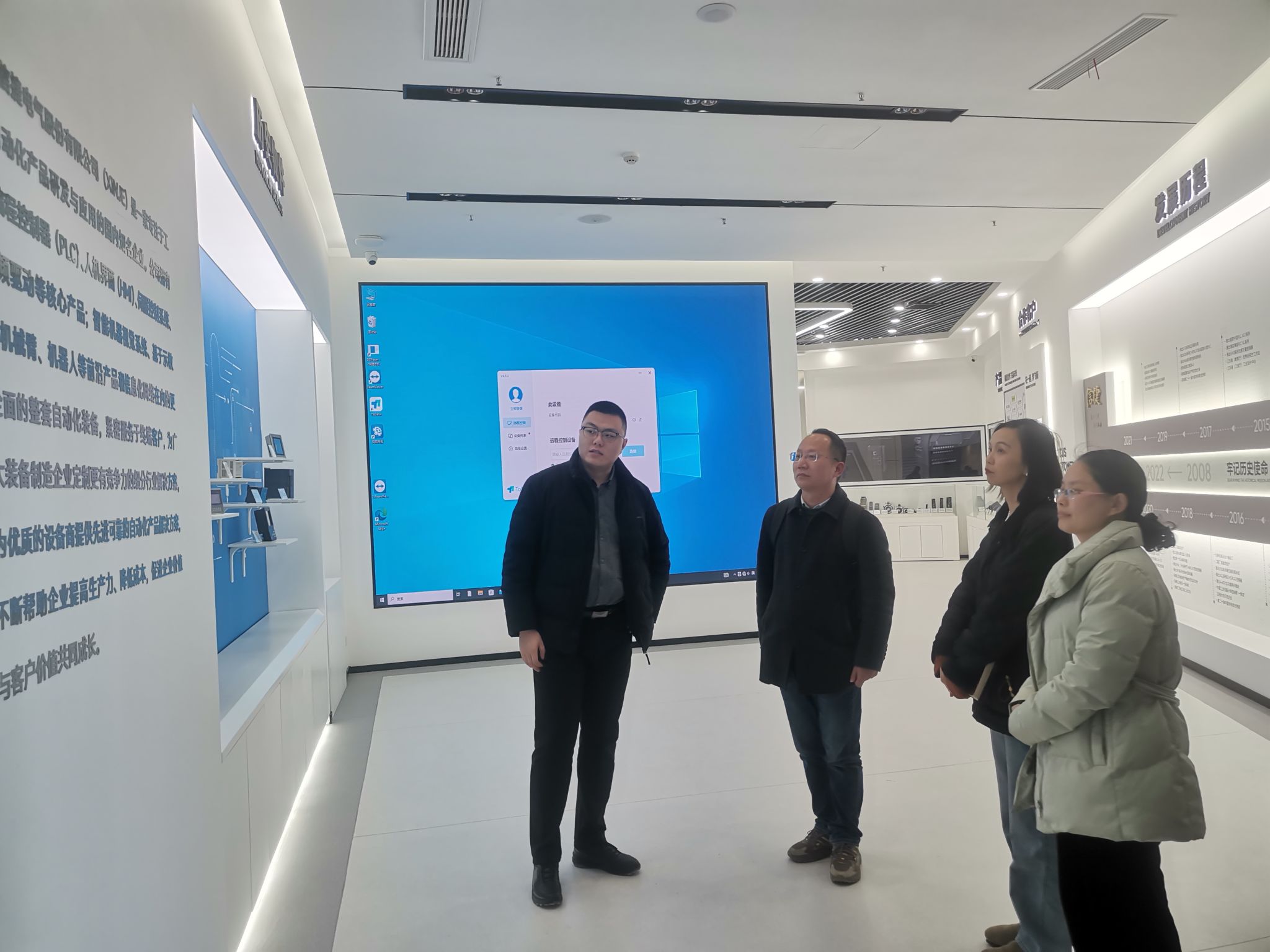 抵达信捷公司后,徐晴副书记一行首先参观了信捷公司展厅。在展厅中,他们深入了解了信捷电气在工业自动化产品研发与应用领域的前沿成果,包括可编程控制器(PLC)、人机界面(HMI)、伺服控制系统等一系列核心产品,对公司的技术实力和创新能力有了直观感受。