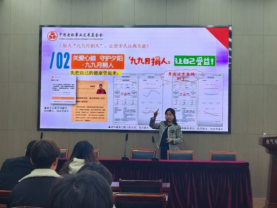 此前,学院还邀请了中国老龄事业发展基金会老年康复工程管理办公室副主任王丽丽和常熟市养老服务促进会副会长兼秘书长戴建华为同学们做“九九月捐”动员培训,目前已有一百多名大学生加入到了“月捐人”的行列,为老年人奉献一份爱心。