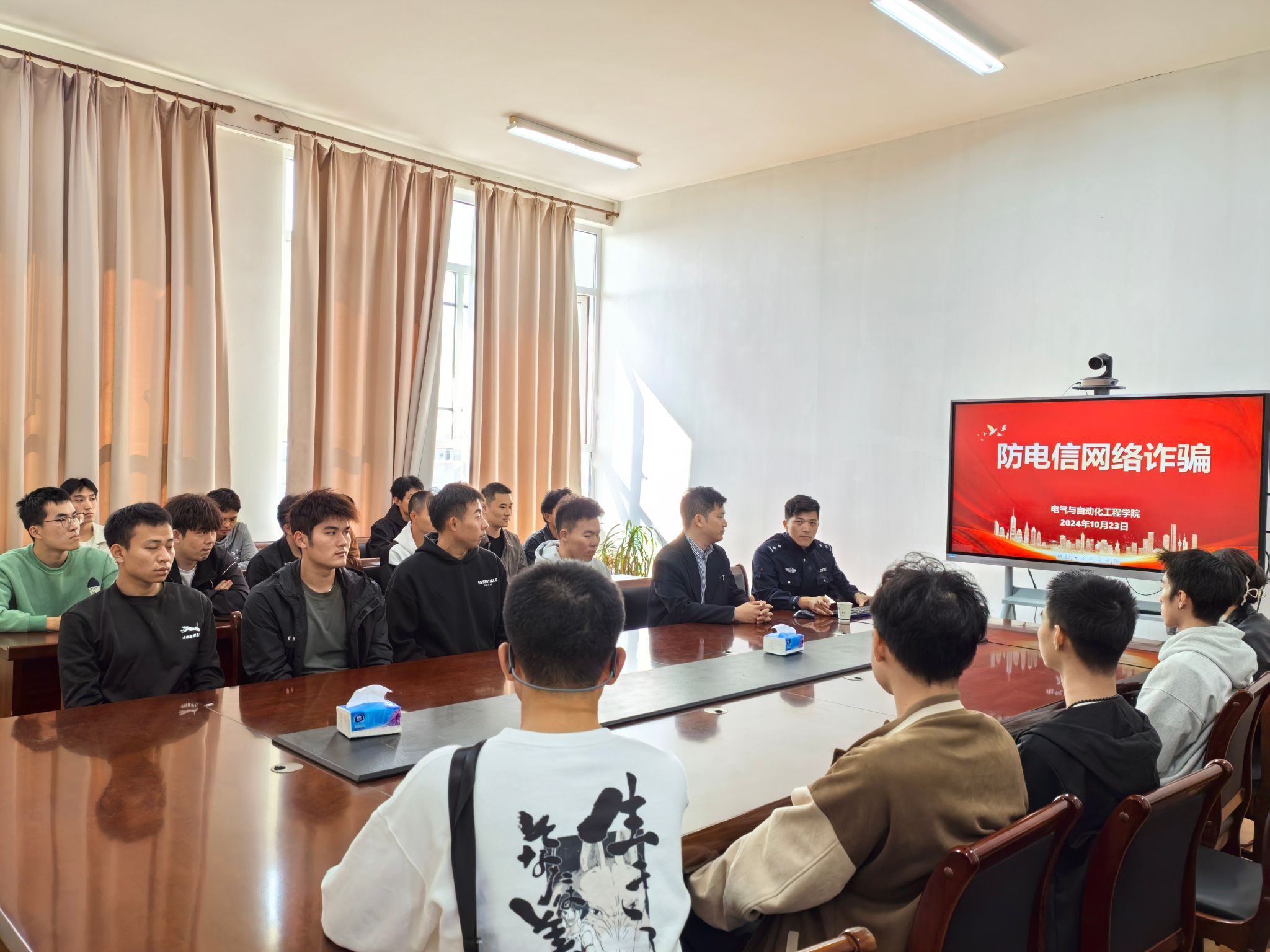 2024年10月24日下午1点半,bat365在线官方网登录在百工楼540成功举办了一场针对退伍军人的防电信网络诈骗专题讲座。本次讲座特别邀请了东南派出所的陶警官作为主讲嘉宾,辅导员夏少立担任主持人,辅导员周翔以及全体退伍军人共同参加了此次活动。