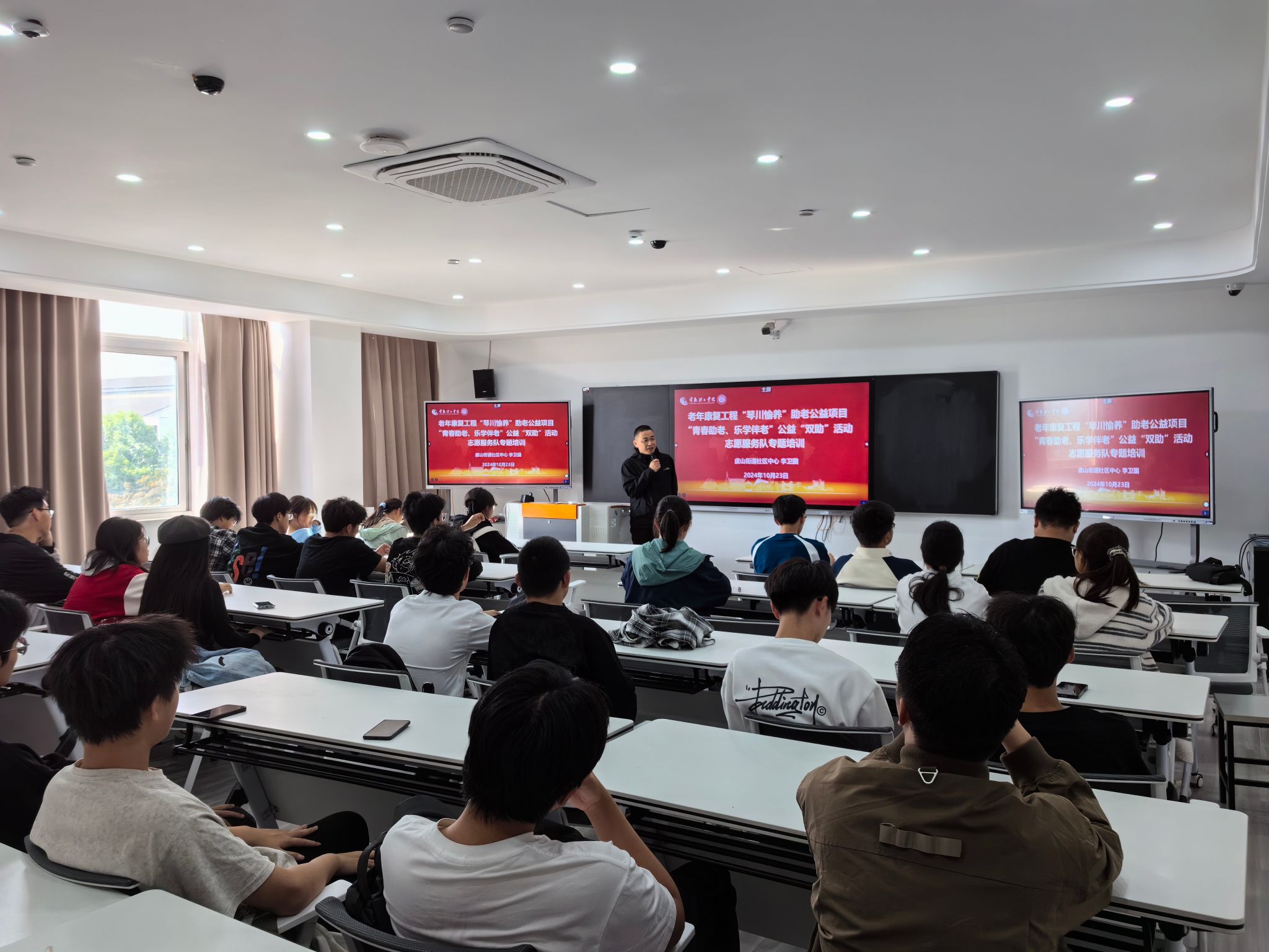 10月23日,常熟市虞山街道社区中心李卫国主任受邀来校为我院慢病筛查志愿服务队学生志愿者开展专题培养讲座,讲座在百工楼326教室举行,学院团委书记祝宇及学生志愿者代表参加了本次讲座。