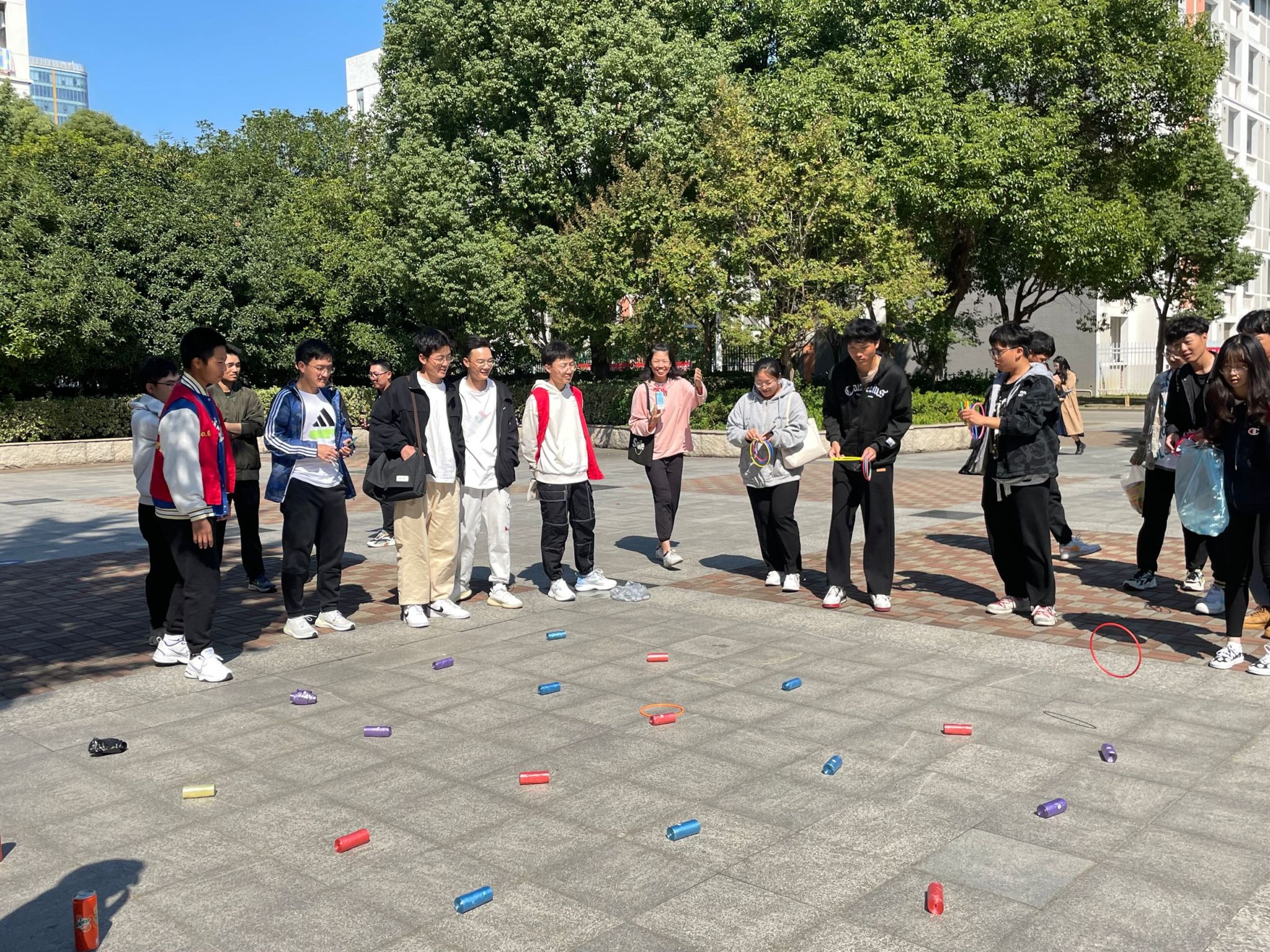 活动当天中午,志愿者们在大学生活动中心东侧集合,活动负责人陈赢为六名志愿者分配工作,两名志愿者负责活动的签到,两名志愿者负责捡圈,一名志愿者负责发圈,另外一名志愿者负责指导套圈。